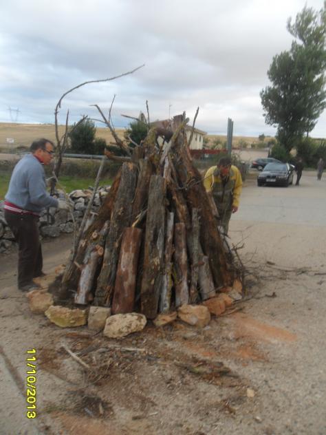 Pedro que les recibió muy bien. Vieron... en esta se puede apreciar la leña colocada ya toda y dispuesta para ser encendida.
