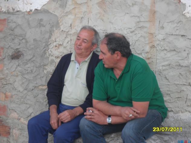 arturo y tino sentados en el banco,