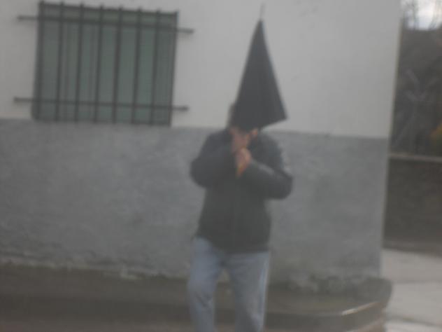 intentando abrir el paraguas,