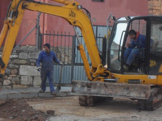 en la máquina haciendo zanja,