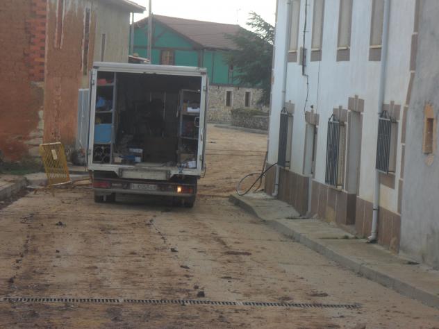 camión cargado de material en la calle,
