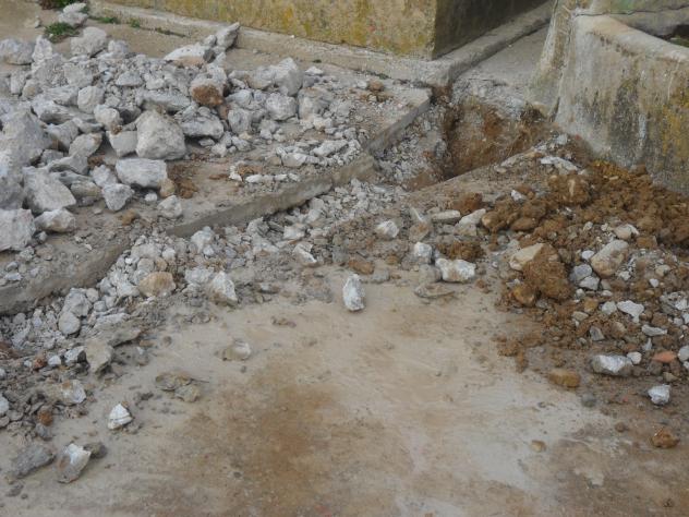 cascotes de la calle junto a la fuente,