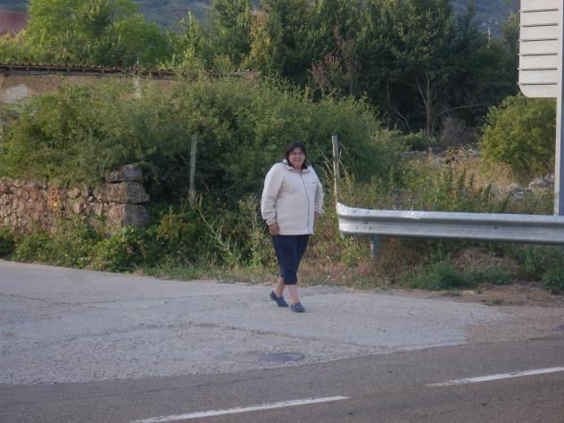 Bea llegando a la carretera,