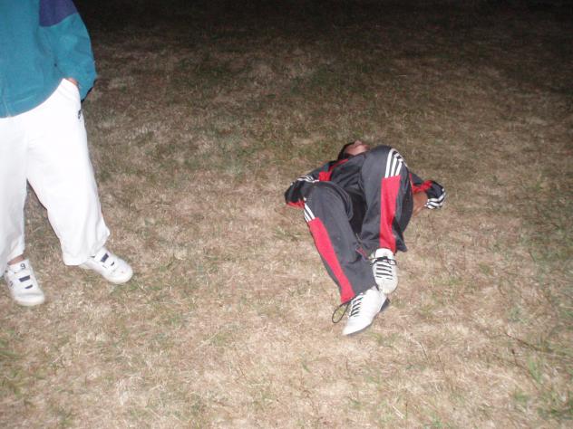 Maikel tumbado en la hierba del jardín iglesia,