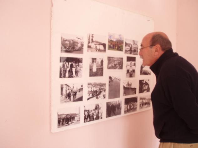 Este señor que mira con mucha atención e interés las fotografías expuestas, nos demuestra que le interesa saber y conocer las vivencias y costumbres de las gentes y pueblos de la zona de la peña, por lo que podemos deducir que es un habitante o natural de esta zona como no podía ser de otra manera.