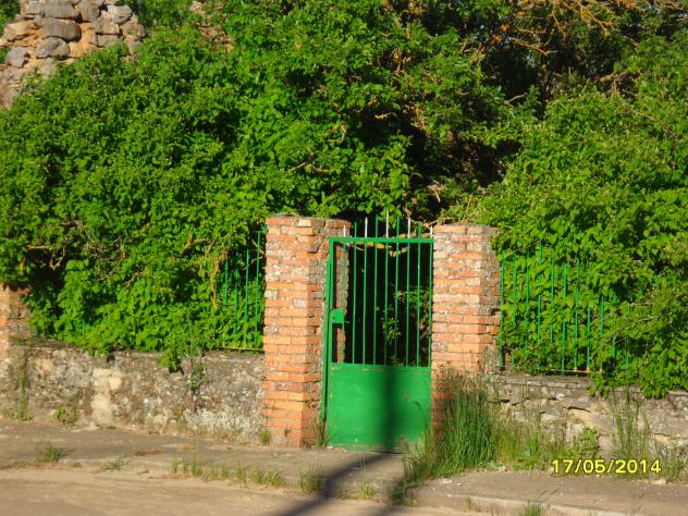 puerta flanqueada por ciruelos,
