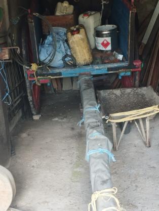 viejo carro junto a la trasera de la iglesia,