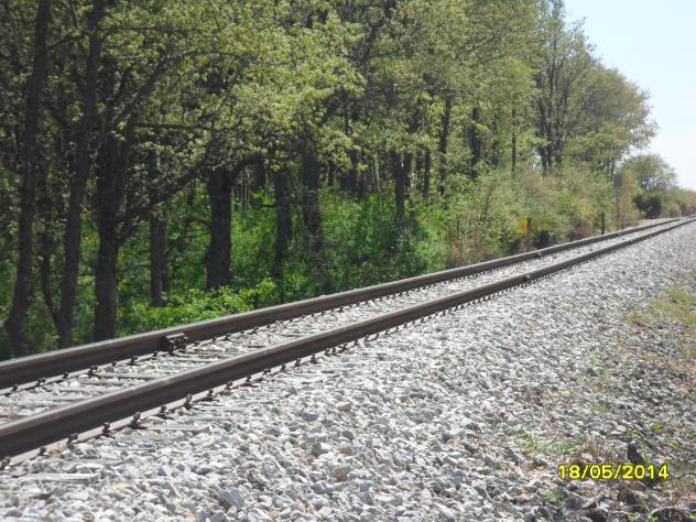 el balastro, la vía y el monte,