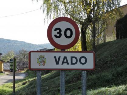 señal de peligro a la entrada del pueblo,