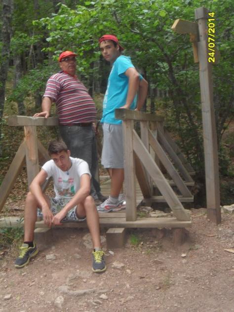 Adrian sentado en el puente de madera,