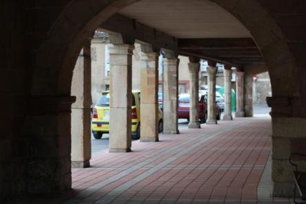 La entrada a los soportales obstruida,