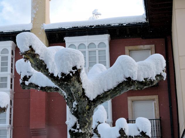 Platanus orientalis cubierto de nieve,
