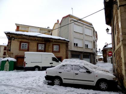 La calle del Obispo abarrotada de nieve,