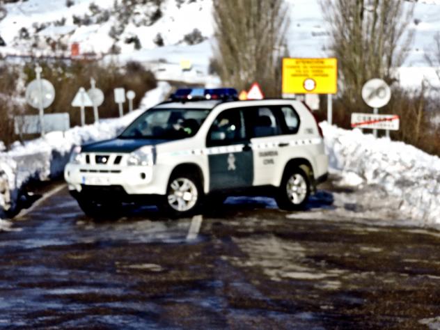 El coche de la Guardia Civil atravesado,