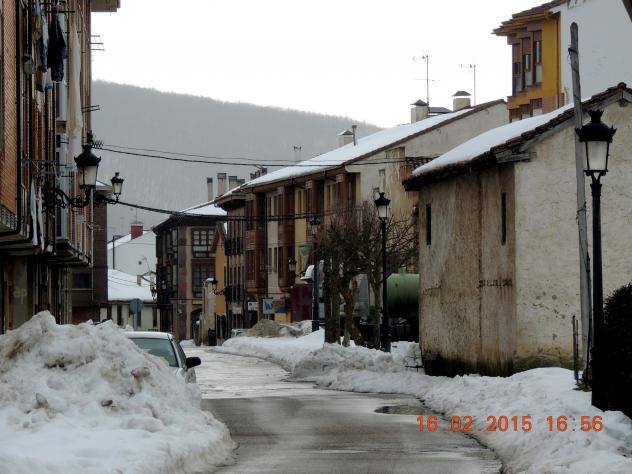 La calle del Cuérnago con nieve en las aceras,