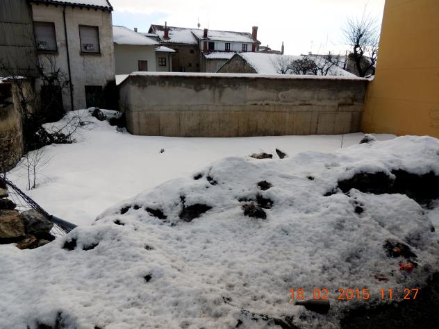 Un solar sin uso lleno de nieve,