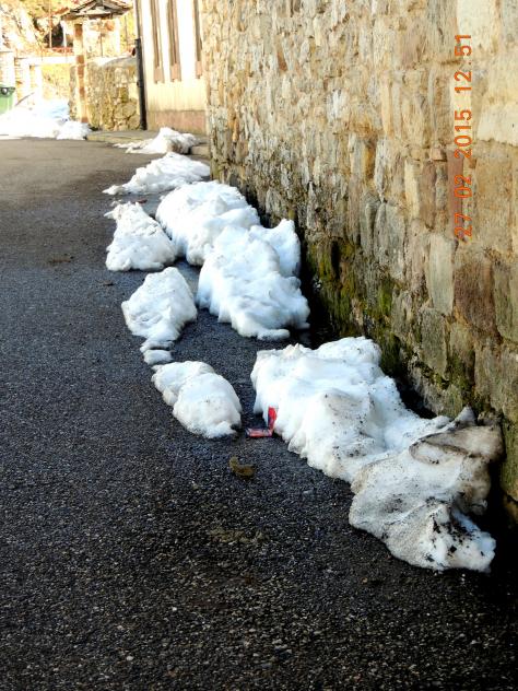 Nevero reducido por el goteo del tejado,