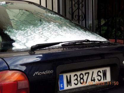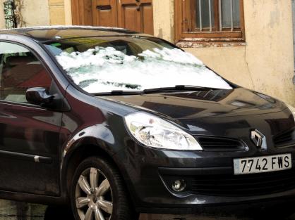 Este coche tien una capa de nieve y además nieva,