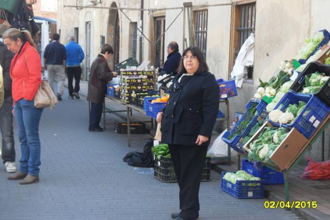 frente al puesto de verduras,