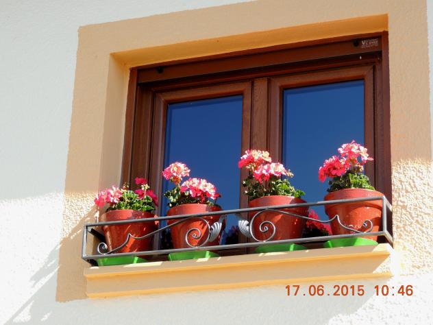Geranios en una ventana,