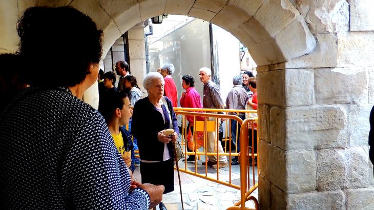 Con su bollo y su bastón,