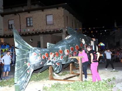 La trucha es arrastrada por el carretillo,