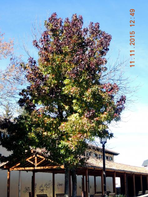 Rico muestrario de colores de Liquidambar en otoño,