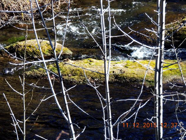 El musgo de las rocas del fondo del río,