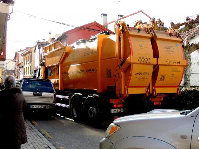 Un atasco. Camión recogecontenedores,