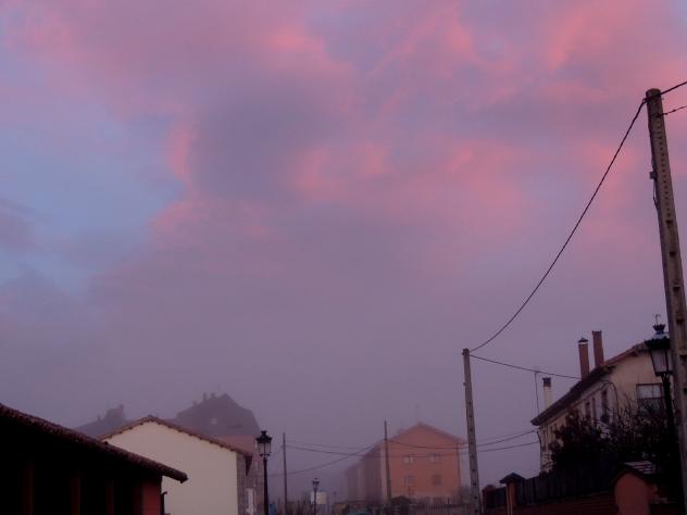 Niebla y nubes rosadas,