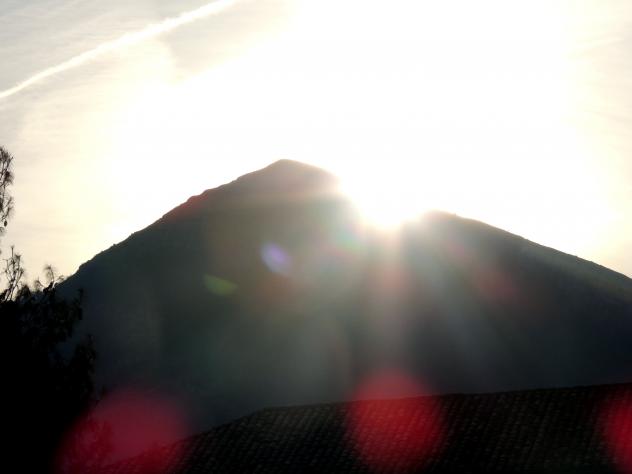 Ha ocurrido ya, el sol en vez de ocultarse tras la silueta Sur del Pico, le remonta y se oculta por su cara norte...