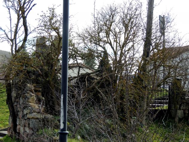 Muro ruinoso y maleza,