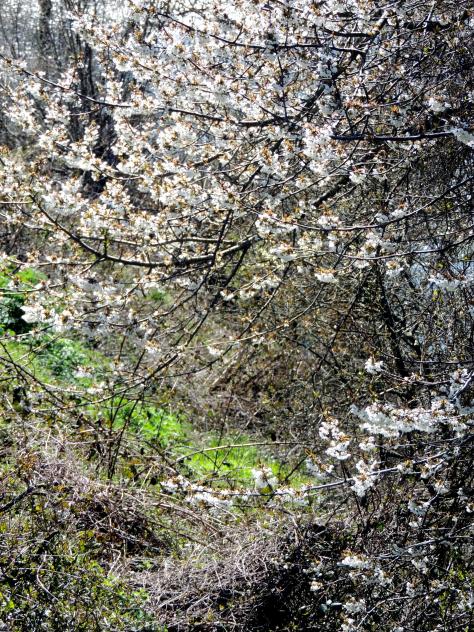 Un grupo de Prunus avium totalmente florecidos,