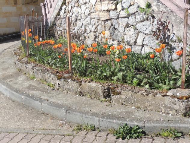 Pequeño jardín con Tulipanes,