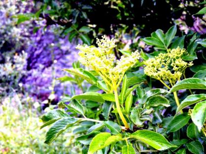 Muro cubierto de Sambucus nigra (Sauco),
