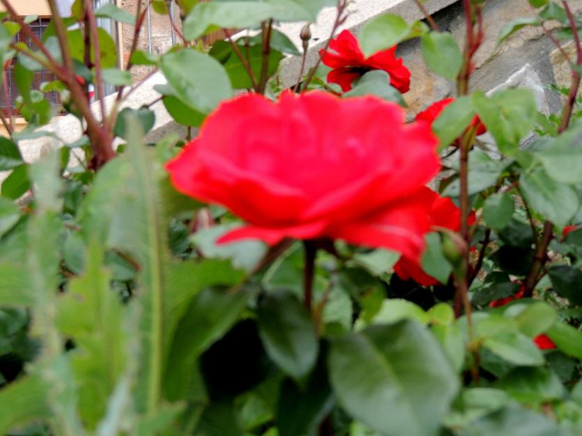 Rosa roja en el parterre,