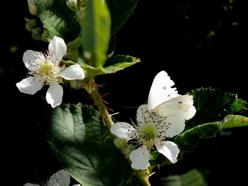 Mariposa blanca sobre flor blanca,