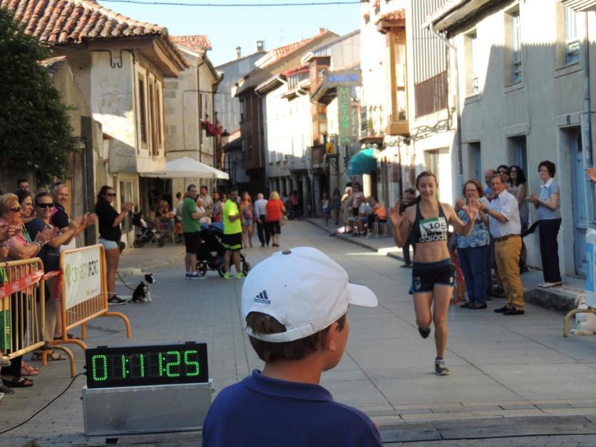 La primera mujer entrando en la meta,