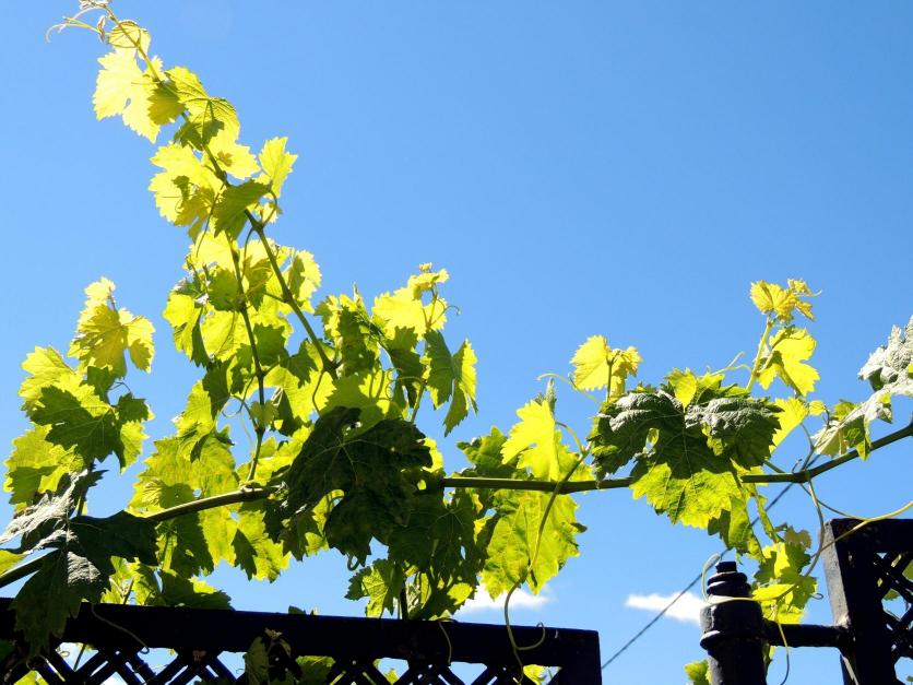 Hojas y zarcillos de Vitis vinifera (Parra),