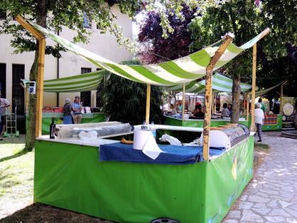 Un stand sobre todo de utensilios de mimbre,