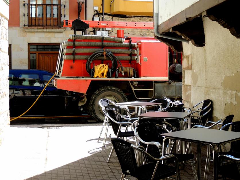 Limpiando calles con agua,