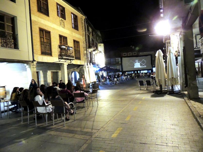 La plaza y la plácida noche desde la salida,