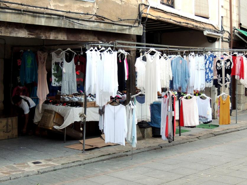 Un puesto de ropas de mujer,
