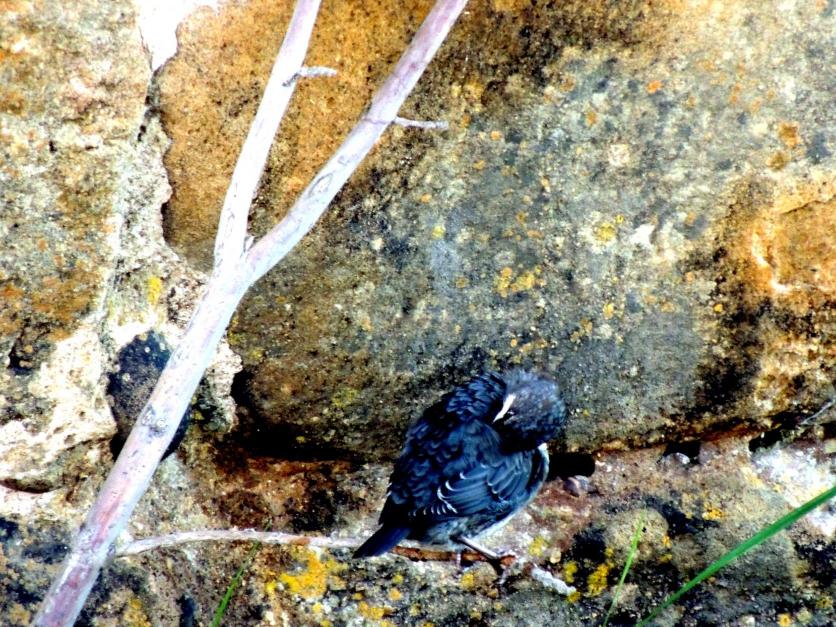 Un mirlo acuático alisando sus plumas,