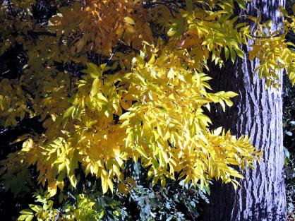 Un abedul tiñe sus hojas de amarillo y resisten,