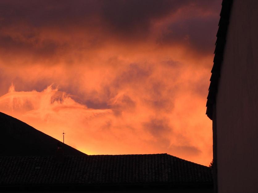 Un cielo alborotado y flamígero,