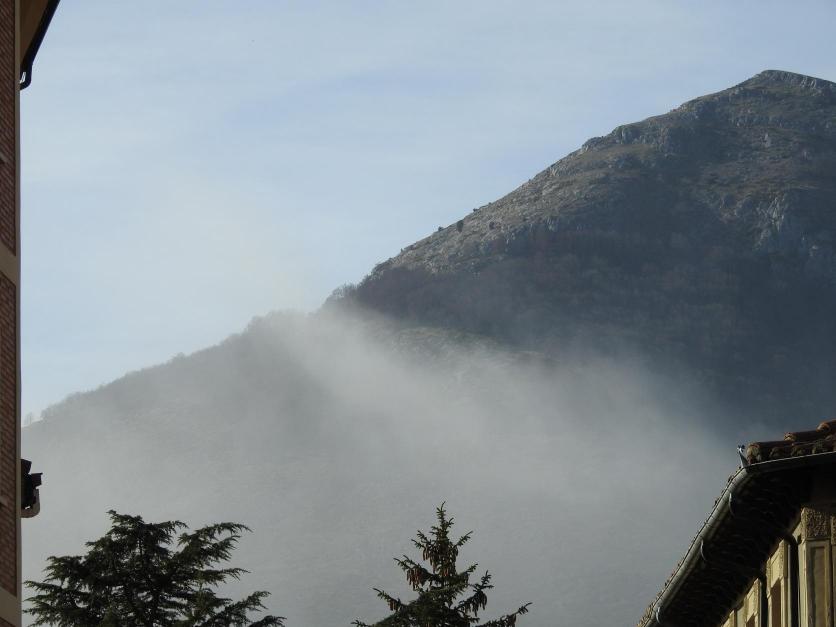 La niebla aun rodea la base de Pico Almonga,