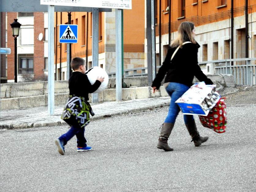 Madre e hijo van al Colegio,