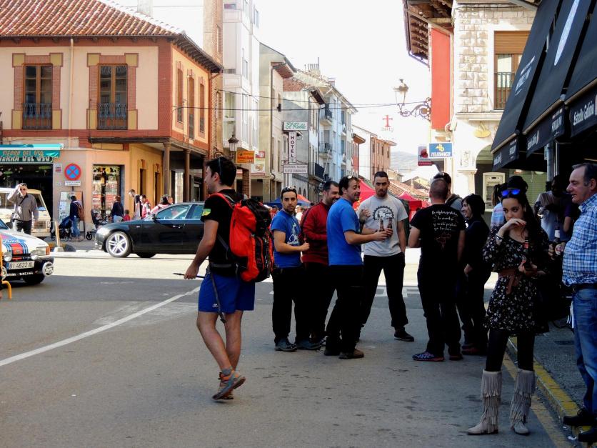 Grupo numeroso bebiendo algo en el bar de la esquina,