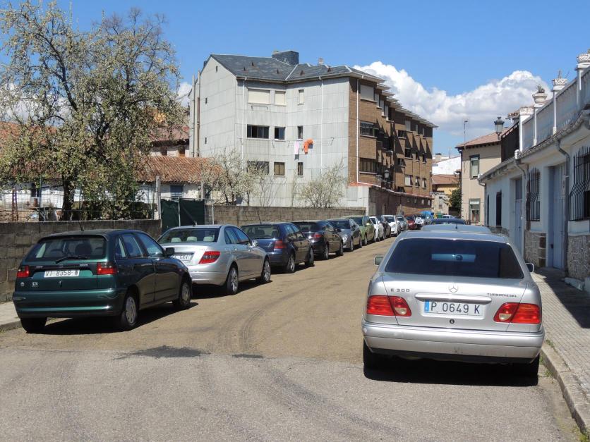 La calle del Cuérnago repleta de coches,